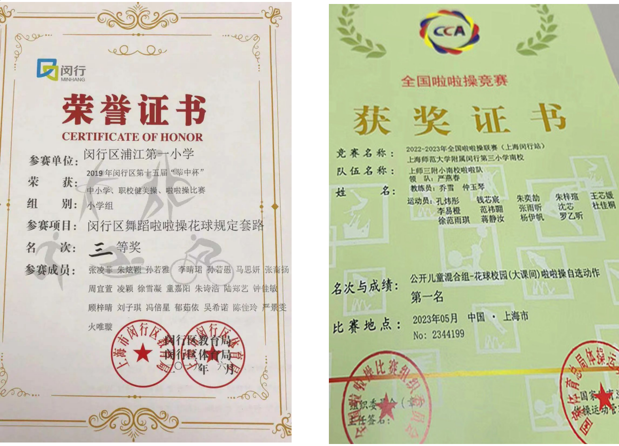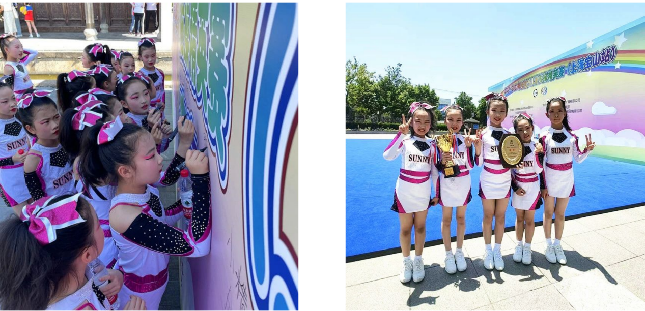 经历了闵行站夺冠后,队员们带着夺冠的喜悦和自信,又参加5月28日举行的全国啦啦操精英赛宝山站比赛。比赛中,孩子们出色的表演得到了裁判的一致肯定,再次夺得宝山站比赛冠军,而后又一举斩获上海市第三届“尊木汇杯”市民运动操舞比赛冠军。