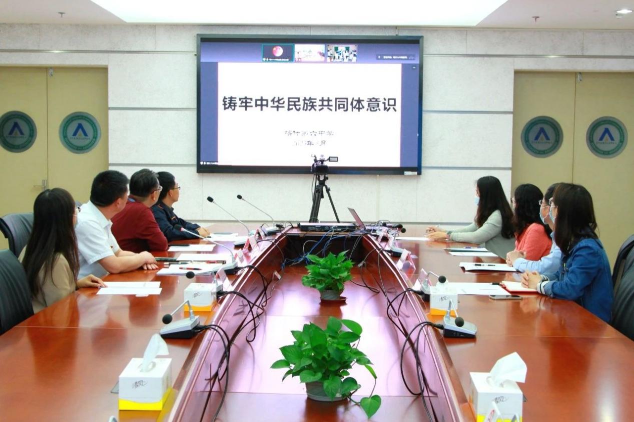 2023年5月22日, 附属中学与 附属喀什中学在线上开展“铸牢中华民族共同体意识”专题教学研讨。上师大附中校长严一平,喀什附中校长肖铭和部分学科骨干教师代表出席本次研讨活动,分会场由上师大附中党委副书记朱银辉主持。