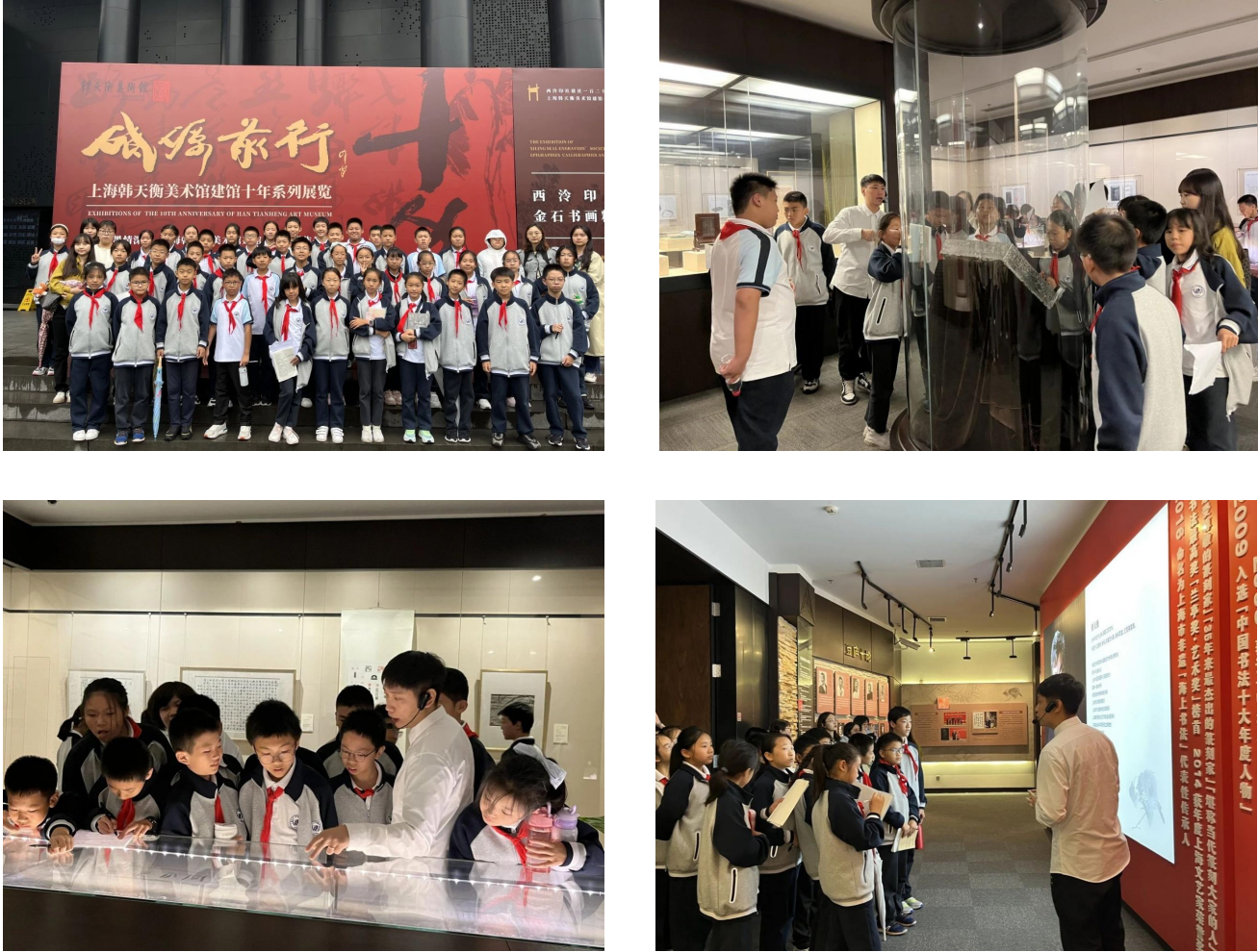 历史与现代的交融、黑色与白色的碰撞,是韩天衡美术馆从外观上给同学们的第一印象。跟随着讲解员的步伐,大家在艺术足迹馆中深入了解韩天衡的生平和历程,近距离地观赏中国传统书画篆印和不同流派的展品,结合创作背景、理念、主题等,真切提升审美鉴赏能力和艺术感知力,感受华夏古典和现代先锋两种文化交相辉映的魅力。