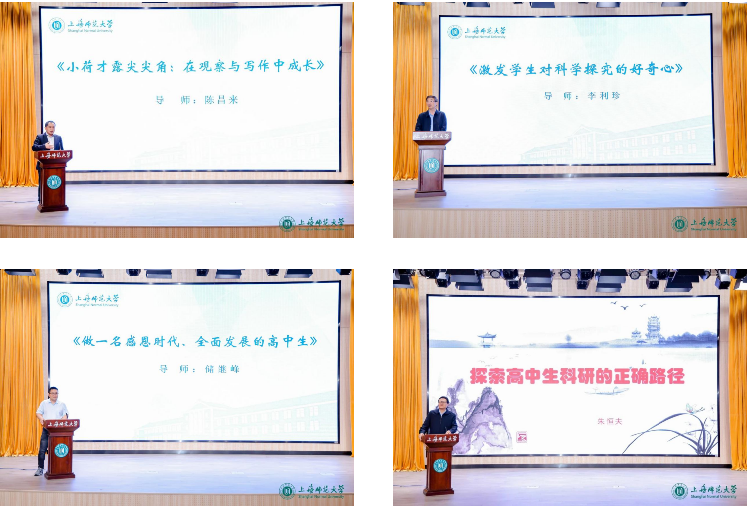 会上,陈昌来、李利珍、储继峰、朱恒夫四位博士生导师及上师附中宝山分校的学生代表对学术研究阶段性成果进行交流分享。