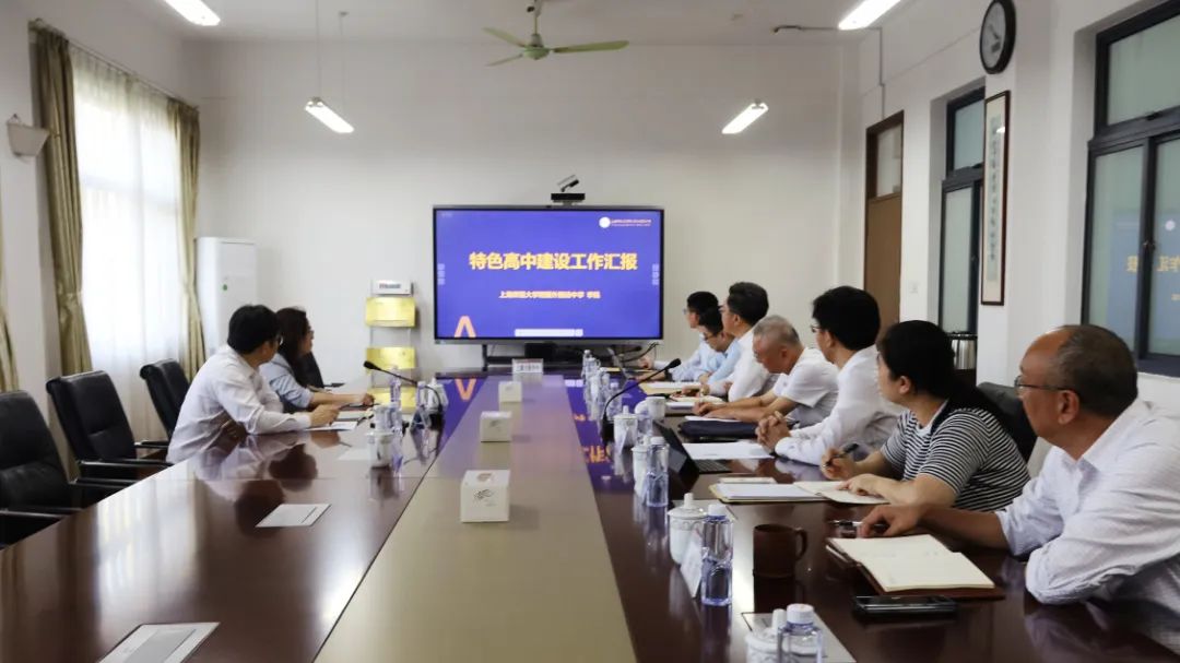 会上,松江区教育局就区域普通高中规划与建设等相关工作情况进行汇报, 附属外国语中学就学校特色高中建设工作情况进行了汇报。