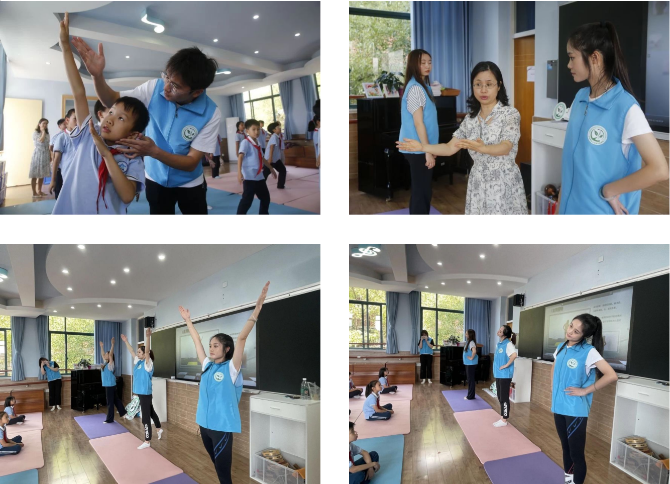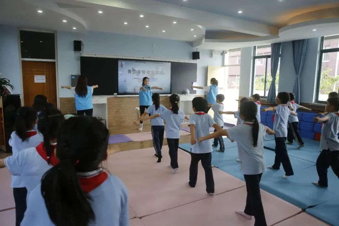 10月11日下午,在上海师大体育学院袁凌燕教授的组织下,上海师大的“脊”先锋团队在音乐教室给三年级小朋友上了一节生动有趣的健康操课堂。团队成员运用通俗易懂的语言结合舒展的肢体动作,向同学们宣传健康的姿势。本次健康操活动在“脊”先锋团队的带领下,扎实、有效地把健康教育渗透到每个学生的心里。