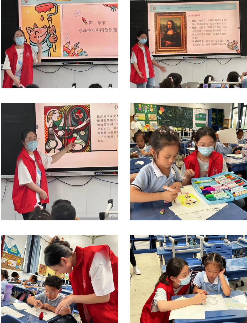 志愿者们鼓励学生们进行自由创作。孩子们拿起画笔和颜料,用自己的双手描绘出心中的世界。他们发挥自己的创意思维,创作出了各种独具特色的画作。在这个过程中,志愿者们不断给予指导和鼓励,帮助孩子们不断完善自己的作品并且耐心倾听每个孩子的想法,引导他们发挥自己的创造力和想象力。最终,孩子们的作品展示在教室里,每一幅画都充满了独特的魅力和创意。同学们的动手能力和创造力得到了很大的提升,也为他们的未来艺术之路打下了坚实的基础。