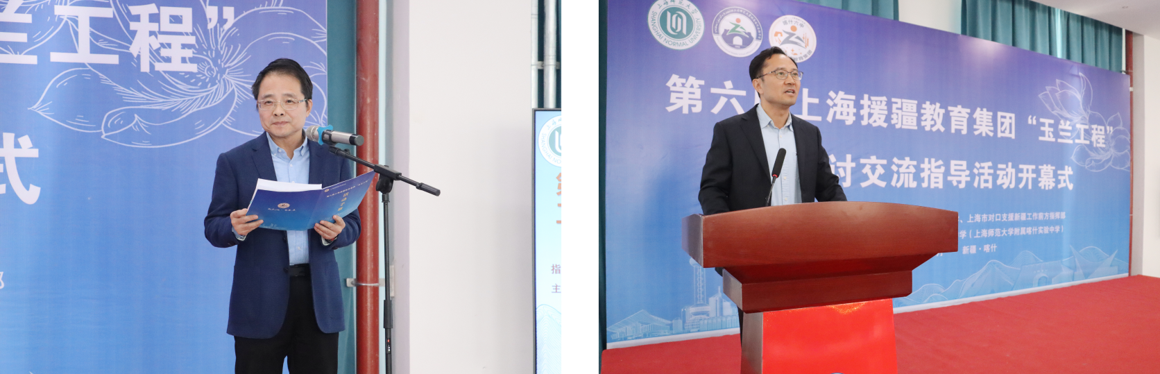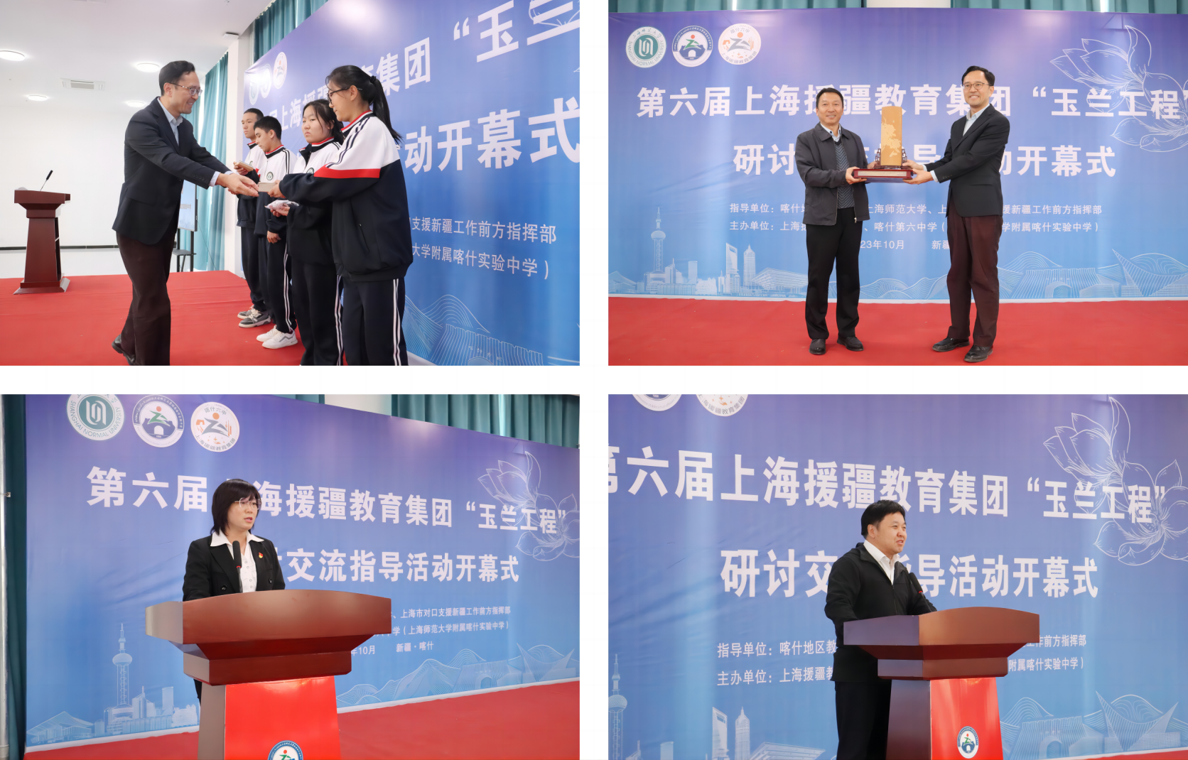 10月26日下午,在附属喀什实验中学隆重召开活动开幕式。开幕式上,我校基础教育集团选派的援疆干部、上海市教育援疆人才领队、附属喀什实验中学校长肖铭同志隆重介绍了上海师大专家团队的25名专家,其中包括我国著名高等教育学家、 原校长杨德广教授,影视传媒学院朱恒夫教授,马克思主义学院院长张志丹教授,上海市特级校长、徐汇区教育学院原院长李文萱,上海市特级校长、上海市第一中学原校长杨泰山等。附属喀什实验中学党委书记孙卫东同志表示:“上海教育援疆薪火相传,短短几年为我校打造一支‘带不走’的高水平师资队伍,未来学校将以铸牢中华民族共同体意识为主线,不断提高办学质量,进一步办好社会满意的学校。” 郭长江副处长表示:“本次活动旨在增强集团成员校之间的交流,通过沪喀教师同课异构的形式,实现教育资源共享和资源互补,搭建起沪喀教师的发展桥梁,助力南疆教育高质量发展。”