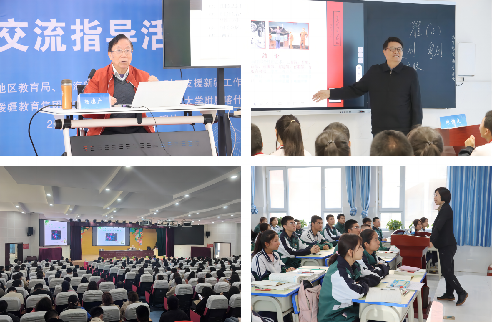 综合指导期间,针对附属喀什实验中学对语文、数学、英语、体育、生物、科学等的发展需求,上海师大 组建了特级校长李文萱、特级校长杨泰山、数学正高级特级教师王国江、语文正高级特级教师鲍志慧(嘉善县上师实验学校总校长)、数学正高级特级教师赵玉梅(附属临港中学校长)、生物资深教研员许琼老师、科学资深教研员印兰、体育学院原院长蔡皓教授、体育学院高幕峰教授、人文学院王正瀚副教授、信息与机电工程学院季隽副教授等专家团,对语文、数学、英语、体育等学科进行推门听课、评课、研课十余节,并指导教研组开展教研活动。 专家郭长江副教授与附属喀什实验中学校领导和中层干部团队以及上海赴喀什援疆教师团队进行了多场座谈会,就学校师资配备、教师进修与培训、帮困助学、党建引领、基础教育资源优化部署等重要问题进行了深度的交流研讨。