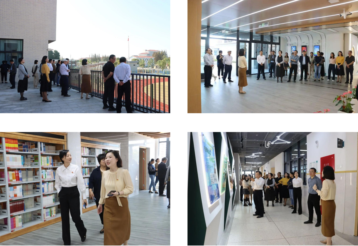 全体工作坊学员在附属奉贤实验中学副校长(主持工作)包蓓姹的引导下参观学校,感受学校校园环境与文化。大家对学校现代化的美丽校园和学校“人人皆可成才”的办学理念表示赞许。