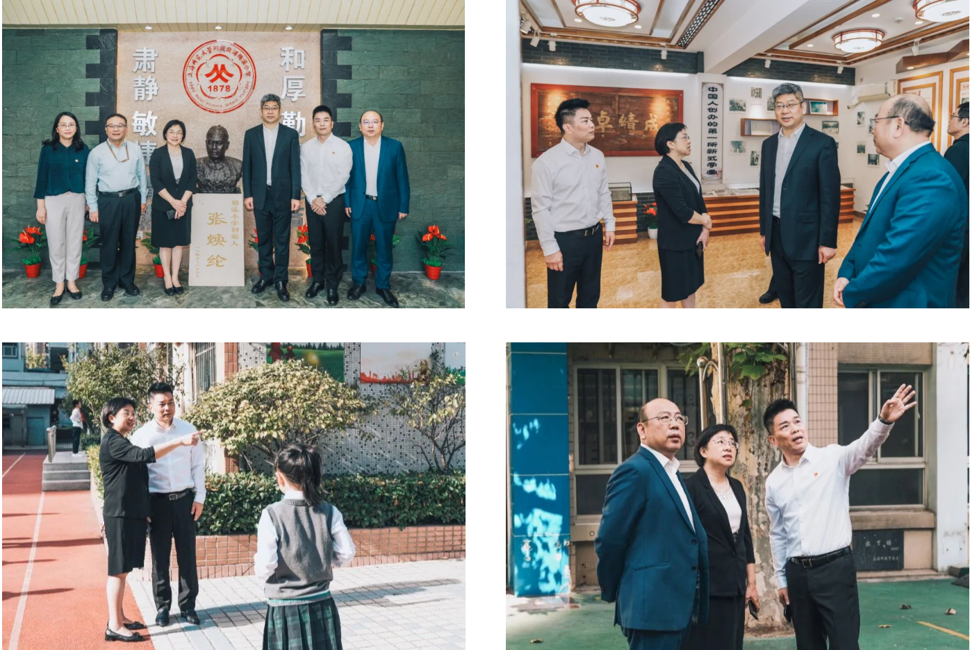 随后在附属黄浦梅溪小学校领导的陪同下,教育部教师工作司一行先后参观了学校文化墙、操场、教学班级等地,充分肯定校园优美的环境、浓厚的文化氛围。他们在校训墙前驻足,对学校创始人张焕纶老先生的办学理念下学生的创新探索、多元发展给予高度评价,也对学校未来的发展寄予了美好的期望。