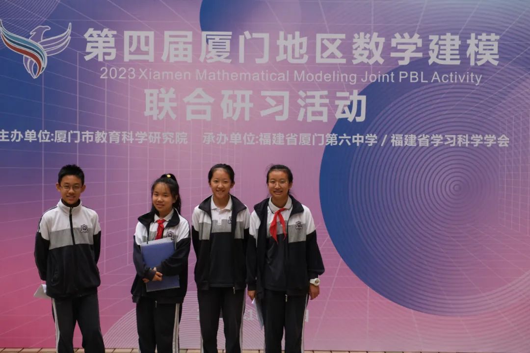 2023年10月28日,由厦门市教育科学研究院主办,厦门六中与福建省学习科学学会共同承办的第四届厦门地区数学建模联合研习活动答辩决赛在厦门六中举行。本次活动吸引来自上海、广东、湖北和福建省九地市的573支队伍共2034名学生报名参赛,规模空前。 附属第五实验学校七年级四名学生组成的数学建模队伍成功闯入决赛并取得了特等入围奖暨一等奖的好成绩,四名学生分别是:潘武逸、吴品洁、周馨雨、毛芯妍。