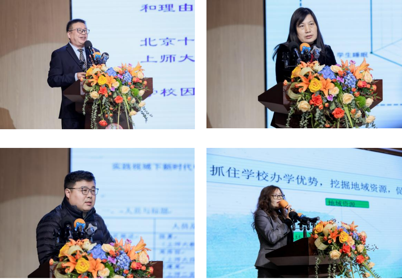 18日上午,各附属学校校长按学段进行了分组研讨活动,分组研讨由王健和郭长江分别主持,与会的校长们介绍了各自学校的基本情况和教育实践经验,并就当前教育领域中的热点、难点问题进行了深入探讨。下午年会主会场的校长微报告环节,附属宁波实验学校校长胡培华、附属杨浦滨江实验小学校长郑小燕、附属第五实验学校校长陈勇、上海市实验学校附属东滩学校校长陈丽萍、 附属中学校长黄岳辉分别从文化育人、管理育人、活动育人、实践育人和课程育人五个方面分享了他们学校在育人工作中的实践成果和优秀经验。