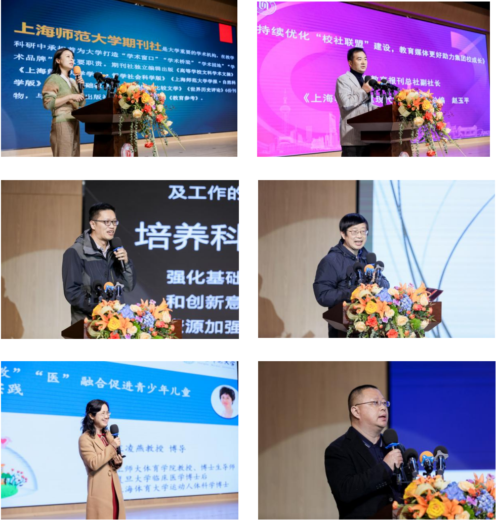 作为一所具有深厚历史底蕴和丰富优质教育资源的高水平师范院校,一直致力于发挥自身在基础教育领域的优势和特色,探索为附属学校和基础教育领域提供更多优质的资源和专业支持。在年会主会场,学校期刊社教育编辑室主任孙珏作《赋能学术写作,促进专业成长》汇报,上海教育报刊总社副社长赵玉平作《持续优化“校社联盟”建设,教育媒体更好助力集团校成长》汇报、数理学院副教授冯朝君作《仰望星空课程》汇报、数理学院副教授陆新生作《艺数折纸课程的开发与实践》汇报、体育学院教授袁凌燕作《体、教、医融合促进青少年儿童脊柱健康实践》汇报、影视传媒学院副教授陈劲松作《走进美妙的戏剧花园》汇报,专家学者们展示了各自领衔的学术团队打造的优质教育服务资源成果,彰显了学校基础教育优质资源供给模式创新的建设成果和特色品牌。学校推出的优质基础教育服务资源展示获得了与会附属学校校长们的热烈欢迎,现场达成多项合作研究、合作实验、合作推广意向。