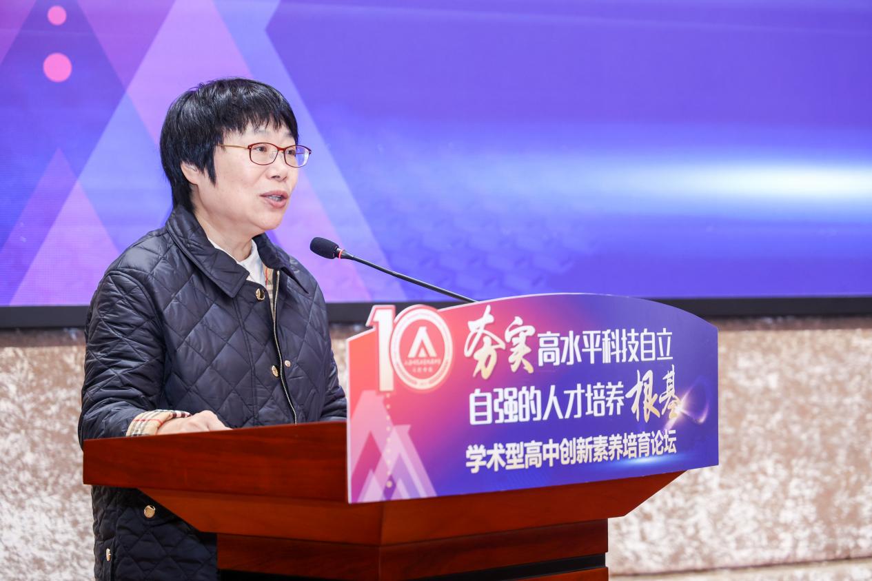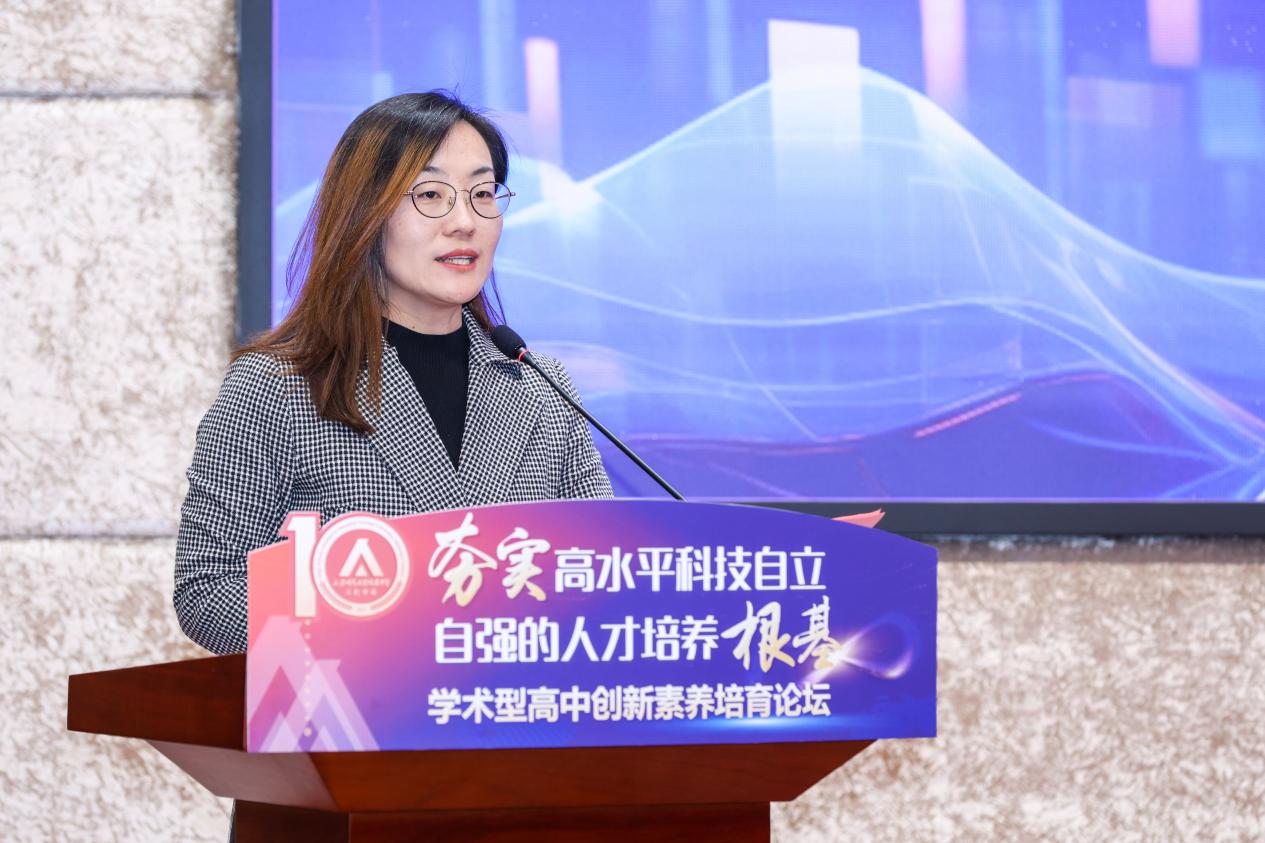“学术型高中创新素养论坛”活动中,五所高中的校长分享了各自学校的人才培养历程与宝贵经验。 附属中学闵行分校党支部书记、校长赵婷首先介绍了学校从“0—1—N”的科创教育探索历程,从一封信带来的机遇到学校“借外力”——实现科创课程“零”的突破,到“抢生源”——四个“一”学习模式的构建,再到“建书院”——统整“N”门科创课程。学校整合多方资源,从无到有、从少到多,学校课程从碎片到系统、从丰富到优质,在积极探索与不断实践中逐步形成了“德育为先,面向人人,文理相济”的科创育人体系,向着学术型高中迈出坚实的步伐。