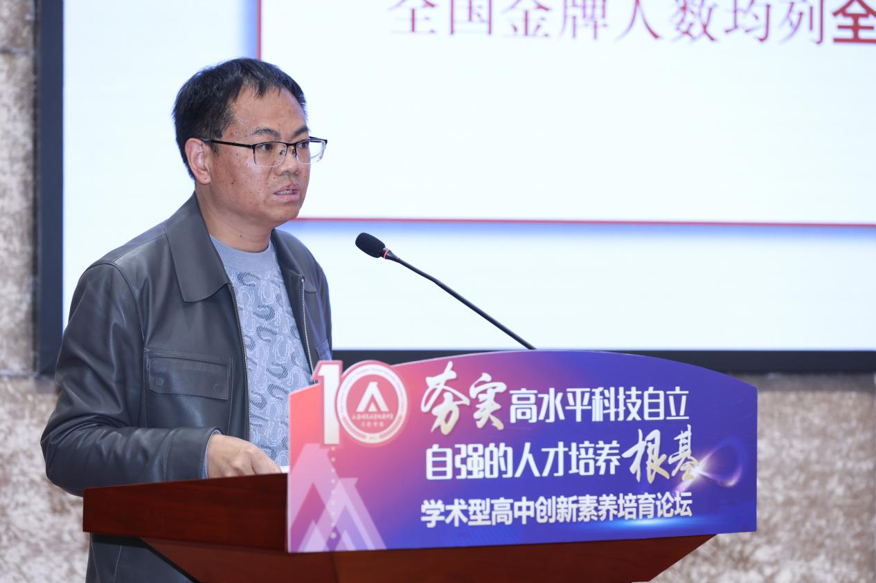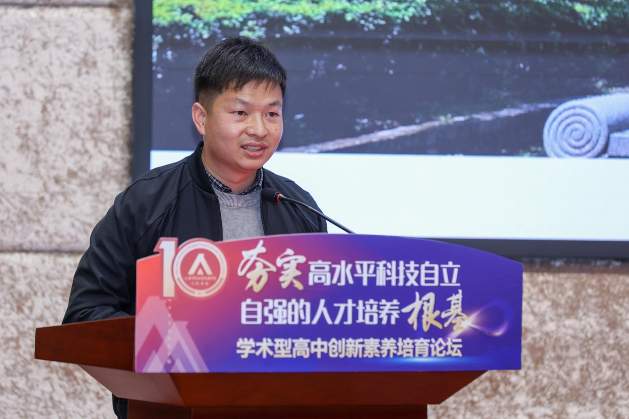 四川省成都市第七中学林荫校区执行校长蔡泽勇分享了七中拔尖创新人才培育的成功经验:个性化的课程设计和弹性的教学管理。七中形成了超越现有“标准化”课程和评价框架,同时创新个性化课程设计和弹性教学管理,建构核心知识与关键能力并重的高品质课程;其次在注重培养学生知识基础与学术能力的同时,高度重视培养学生的社会情感、交往表达、心理品质、批判性思维等素养与能力;同时注重整合社会资源,将学校教育教学与社会实践、社会生活紧密结合,将学习与真实世界紧密结合。最后蔡泽勇提出两点思考,一是理想信念教育为拔尖创新人才早期培养铸魂,二是让优秀人才提早感受和进入科技前沿的研究是拔尖创新人才培养的关键。