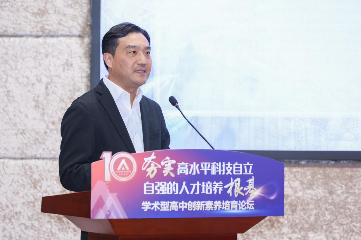 处长、博士生导师王健教授作专家与谈发言。王健认为今天的基础教育要有躬身入局的站位,要把拔尖创新人才培养探索的工作摆进时代的大潮、历史的大势和民族复兴的大业中去。王健认为,在基础教育中加快建立一套科学、成熟的拔尖创新人才培养制度,可谓有目标、有共识、有条件、有挑战。他提出,首先需明确拔尖创新人才的定位,进一步深入探索、发展与完善拔尖创新人才的识别体系、培养范式、评价体系。其次落位要快,要及时将培养拔尖创新人才的目标落实到行动,在“绝对快,相对准”的培养模式迭代中不断摸索更优的培养路径。王健还认为应该推动大中小学携手进行拔尖创新人才培养的“识才-选才-育才”的系统性设计,尤其是在拔尖创新人才的早期识别与高水平因材施教上,推动基础教育与高等教育形成有效合力与良好生态。引导学生形成“从游”的学习方式,培养学生身上意气昂扬的“侠气”,做敢于担当的时代青年。让新时代青年在飞翔的联想、激情的抗辩、同情的理解和道义的关怀中,获得积极的学习体验。