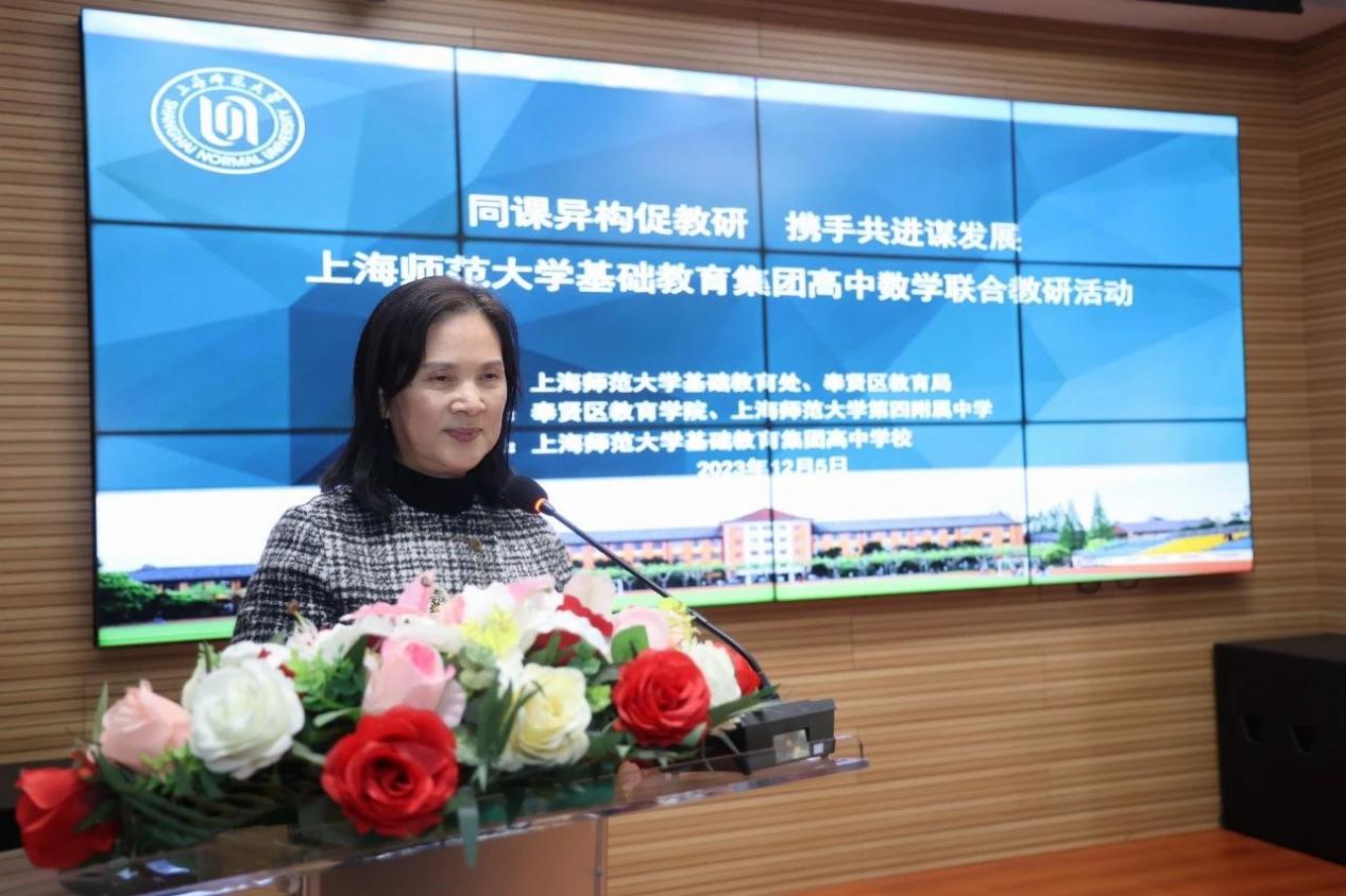 2023年12月5日下午,由 、奉贤区教育局主办,奉贤区教育学院、 第四附属中学承办, 基础教育集团高中学校协办, 基础教育集团高中数学联合教研活动在上海师大第四附属中学顺利举行。本次活动旨在进一步发挥上海师大基础教育集团办学优势,整合各附属学校及所在区数学教研力量,真正实现资源共享,促进教师树立教研意识,提高课堂教学效率,实现“教、学、评”一体化,用集体的智慧打造高效的精品课堂。