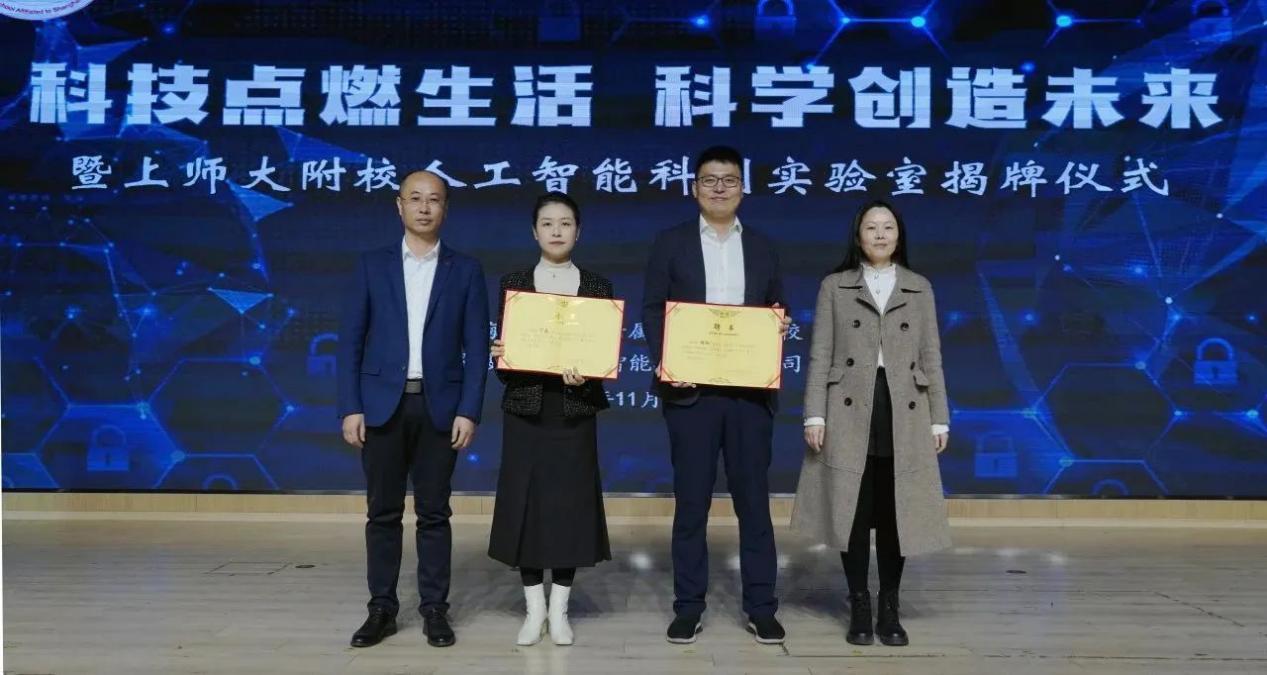 俞奇峰、张钦皓、王亦建和李永强共同为“人工智能科创实验室”和“人工智能少年科学院”揭牌,刘阳和丁晶被聘为学校科创顾问。最后,胡培华就揭牌仪式作了总结,他强调同学要更好地学好文化,自身打下扎实的基础,并通过学校众多的科技课程、拓展课程、融合课程,去拥有去掌握更多的批判性思维、求异思维、创新思维。