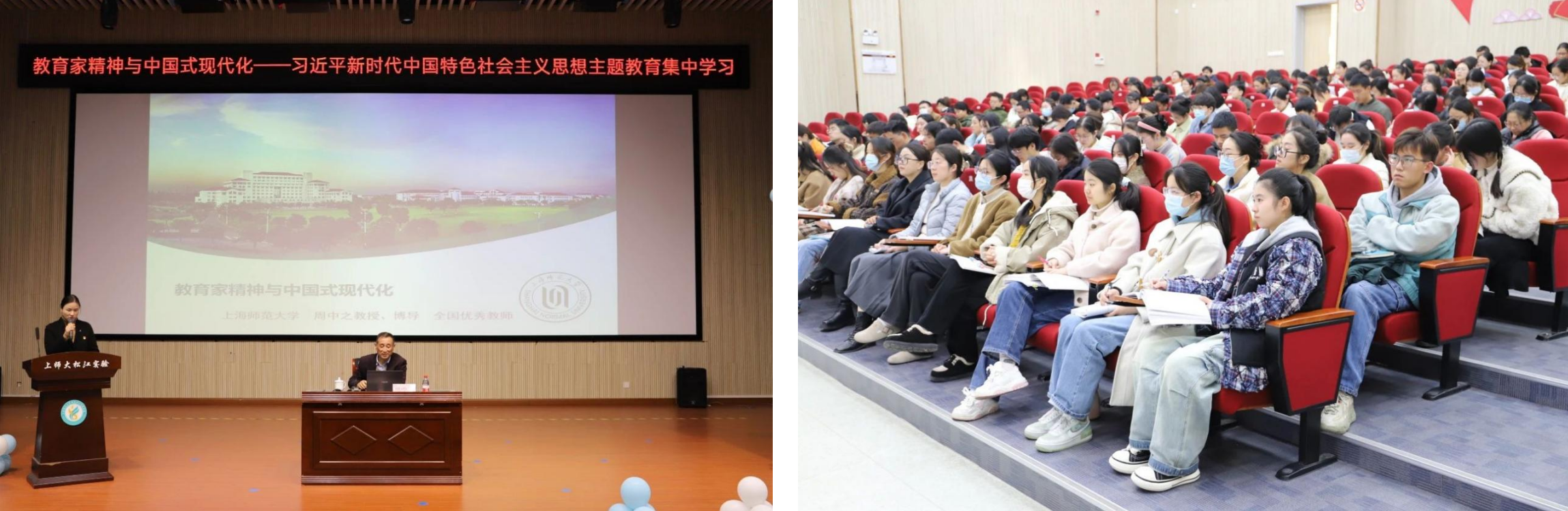 为贯彻落实党的二十大精神,以习近平新时代中国特色社会主义思想的学习实践推进学校高质量发展,提高全体教职员工的政治觉悟和理论水平,2023年12月8日, 附属松江实验学校在行星梦剧场开展了“教育家精神与中国式现代化——学习贯彻习近平新时代中国特色社会主义思想主题教育”专家讲座,泗泾实验教育集团全体教职工参加本次活动。