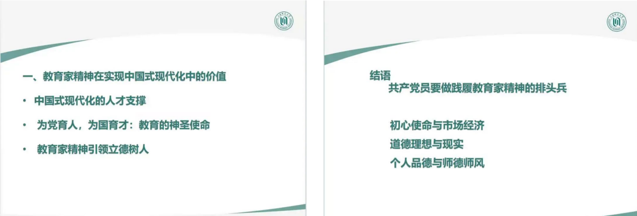 学习过程中,周教授重点介绍了教育家精神在实现中国式现代化中的价值以及对教育家精神的内涵解读——