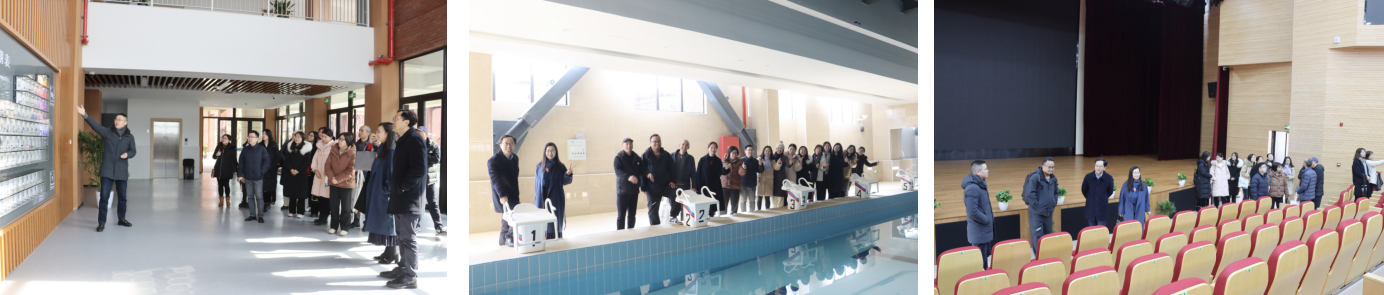 上实东滩高中校长袁万萍和副校长蔡俭为上师嘉高老师们介绍了学校配备的理化生高端实验室、视听多媒体教室、STEM创客空间、恒温游泳馆、学生剧场等设施,这些开放、灵活、可变的教学空间不仅为师生提供了优越的学习条件,也体现了上实东滩高中对现代化教育理念的追求和实践。