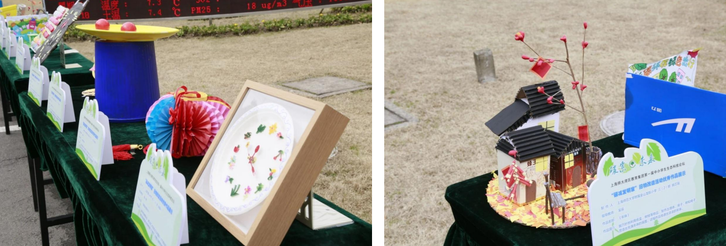 上海师大二附中充满生态气息的校园内,论坛天马行空、奇思巧意的成果以室外展览的方式展出,各校师生在领略校园风光、感受生态的同时,近距离观察这些低碳作品的巧思妙构,在讨论交流中体会科创氛围。