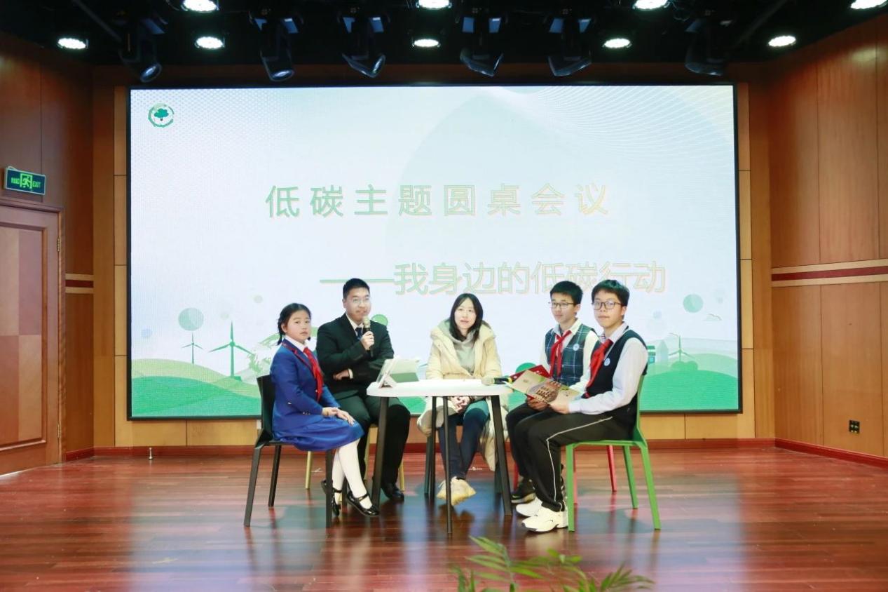 围绕身边的低碳行动与低碳实践,小学、初中、高中学生代表们与华东师范大学生态与环境科学学院张秋卓教授开展了低碳主题的圆桌会议。学生代表们提出了自己的看法与问题,张教授进行了解答,并表示节能、环保、减排、减碳等会是未来发展的方向,呼吁同学们以积极的态度与践行者的觉悟承担起节能环保的社会责任,为祖国的绿水青山变成金山银山做出努力。