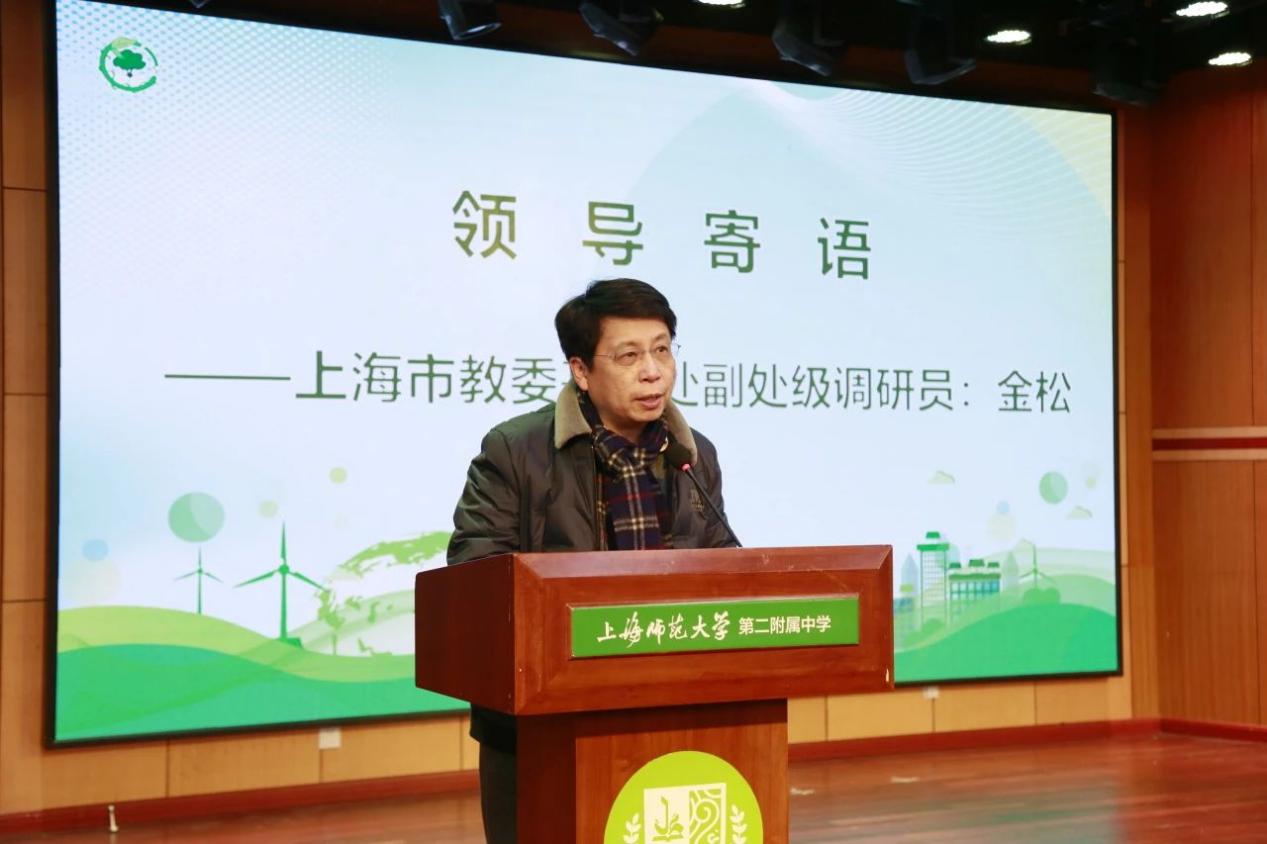 上海市教委基教处副处级调研员金松肯定了上海师大二附中生态科技教育特色自创建以来的成果,并就生态科技教育下一阶段在地区内发挥更多辐射作用与二附中今后的发展表示了祝福与期望。