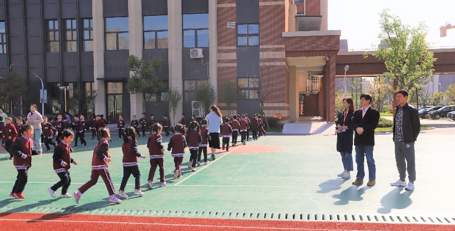 附属松江实验学校为这次活动做了精心的准备。学校所有区域对师大老师开放,并为考察提供便利。老师们除了听课评课开展研修活动外,还前往操场观看了学生的大课间活动。红蓝相间的校服,井然有序的队伍,轻快整齐的步伐,朝气蓬勃的面孔,学生们的活力感染了在场的每一位老师。