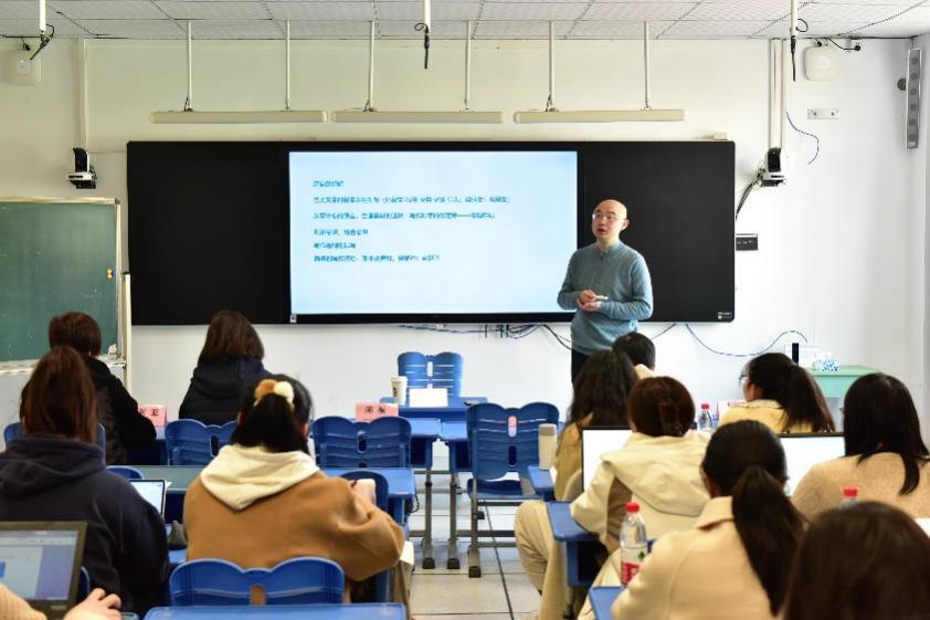 针对作文教学如何与阅读相贯通,薛峰作主题讲座《明确内容 把握要求 读写贯通 关注语用》,以深入浅出的实际案例,展现了作文教学的方法,为老师们指明了作文教学的路径,打开了教学的新思路。薛峰提出,教师要精准把握各学段的学段目标,扎实进行读写指导。第一学段要注重培养学生的语言表达能力,侧重话与话之间的连贯性;第二学段则培养学生“写清楚”的能力,教学生写文章内容要完整,按顺序、有交代,围绕一个意思来写;第三学段则是基于“写清楚”的基础上,指导学生写出事物(人物)重要部分的各类细节和写出事件发展中重要部分的各类细节。另外,习作教学要关注读写贯通,在阅读教学时引导学生向作者学表达。
