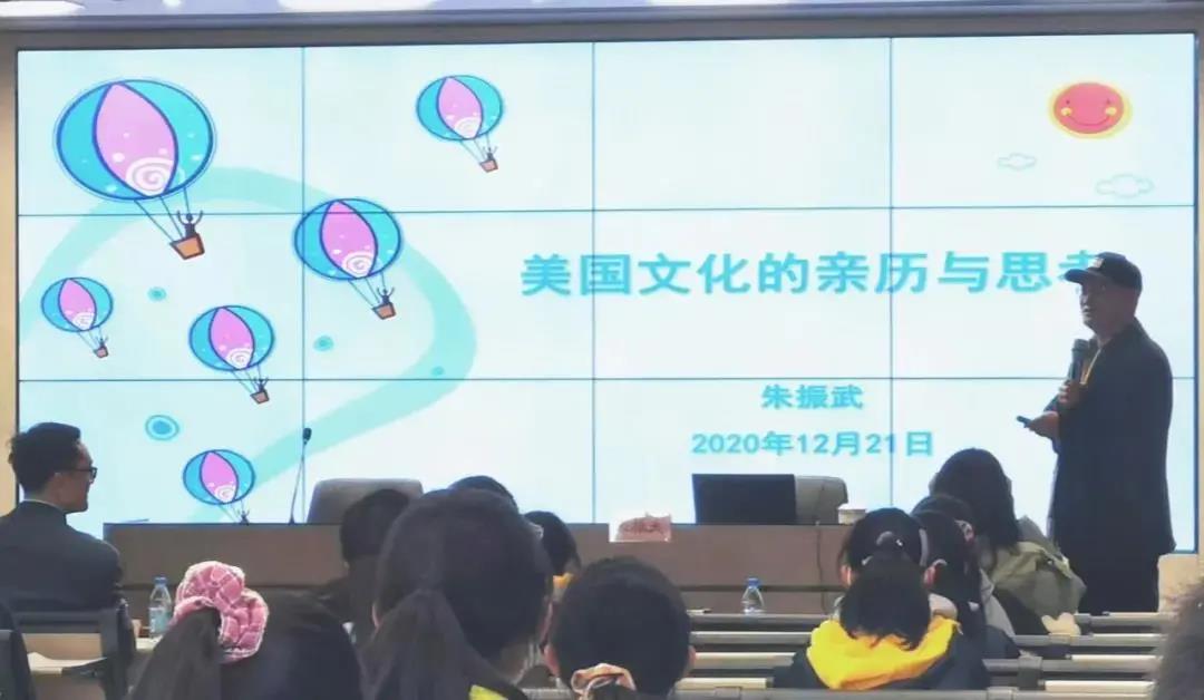 12月21日下午,“海上名师大讲堂”系列活动在上海师大附属第二实验学校举办, 外国文学研究中心主任朱振武受邀带来了一场主题为“美国文化亲历与思考”的讲座。