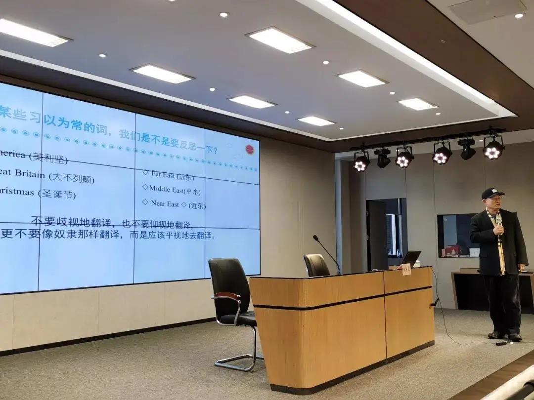 接着,朱教授以中英翻译为例,谈了对待外语的正确态度,表明要利用好外语传播中国优秀传统文化,向世界发好中国的声音。随后,朱教授还给师生们讲述了他所了解到的美国母语教学的部分教材内容,强调外国同样重视本国文化的传承,希望同学们重视母语和本民族文化的学习、传承。紧接着关于怎么认识美国等西方经典这一问题,朱教授提出了他的观点,即立足本土文化,研读美国等西方经典,既能够提升个人整体素养,又能正确认识世界,就不会在盲目崇拜别人的同时失去自我。
