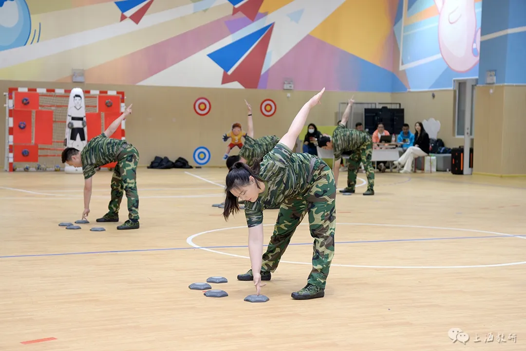 长宁区和浦东新区分别以“新兵入伍体能营,数字融合国防情”和“科技助力大单元,体能铸就小健将”为主题,进行了数字赋能下体能模拟教学的展示。