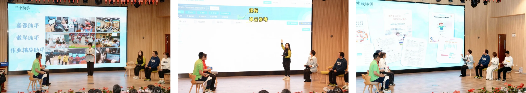 第一幕聚焦“备课助手”,上海市杨浦区平凉路第三小学王忠介绍了学校数字化设备,上海市杨浦区怀德路第一小学马燕红和上海理工大学附属小学袁玉婷则展示了如何在“三个助手”平台上查找和下载备课资源,马燕红还结合自身国培经历,分享了“备课助手”的显著成效。