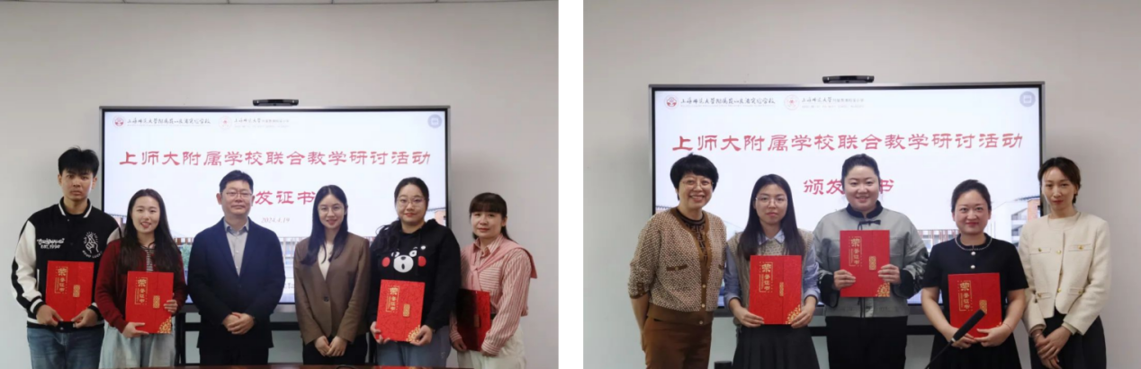 在专家点评指导结束后, 挂职副处长廉洁、 基础教育发展研究院集团科研员陆超博士和昆山市教师发展中心主任秦春勇、副书记潘琰为授课教师们颁发了授课证书。