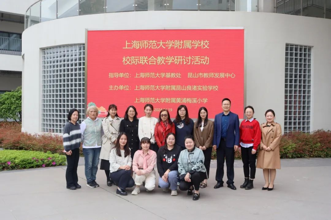 附属黄浦梅溪小学联合开展校际教学研讨交流活动。昆山市教师发展中心主任秦春勇、副书记潘琰、小学数学研训员徐伟、小学英语研训员王誉芳、音乐研训员戴玉珠;张浦镇社会事业局副局长黄茜茜;