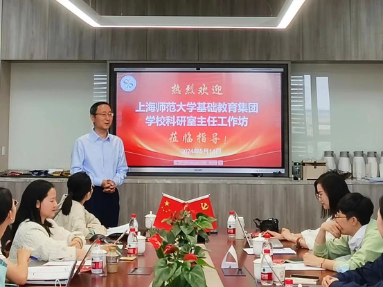 2024年5月14日, 基础教育集团科研室主任研修工作坊第三次研修活动在 附属青浦实验中学举行。本次研修活动围绕“如何撰写课题申报书”这一主题展开。联合国教科文组织教师教育中心副主任王洁教授、浙江外国语学院吴卫东教授、上海市青浦区教师进修学院教科研室陈旭宁老师、 附属青浦实验中学校长胡俊杰,以及来自我校基础教育集团学校的十余名学员参加。