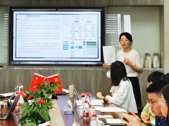 附属青浦实验中学董菊美老师以《“双新”背景下初中数学作业设计的研究》为题做课题展示。基于初中数学作业的现状和作业设计的问题,董老师分别从前端分析、作业设计、作业评价、作业反馈等各个环节详细介绍了本课题的研究内容并着重强调了对作业进行动态分层的创新之处。