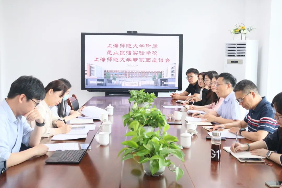 基础教育发展研究院科研员陆超博士、昆山市教育局教研室郁建新副主任、昆山市张浦镇社会事业局黄茜茜副局长齐聚附属昆山良渚实验学校,围绕学校发展规划进行深入指导与交流。附属昆山良渚实验学校李冲校长、行政中层及部分骨干教师共同参加了本次座谈研讨。