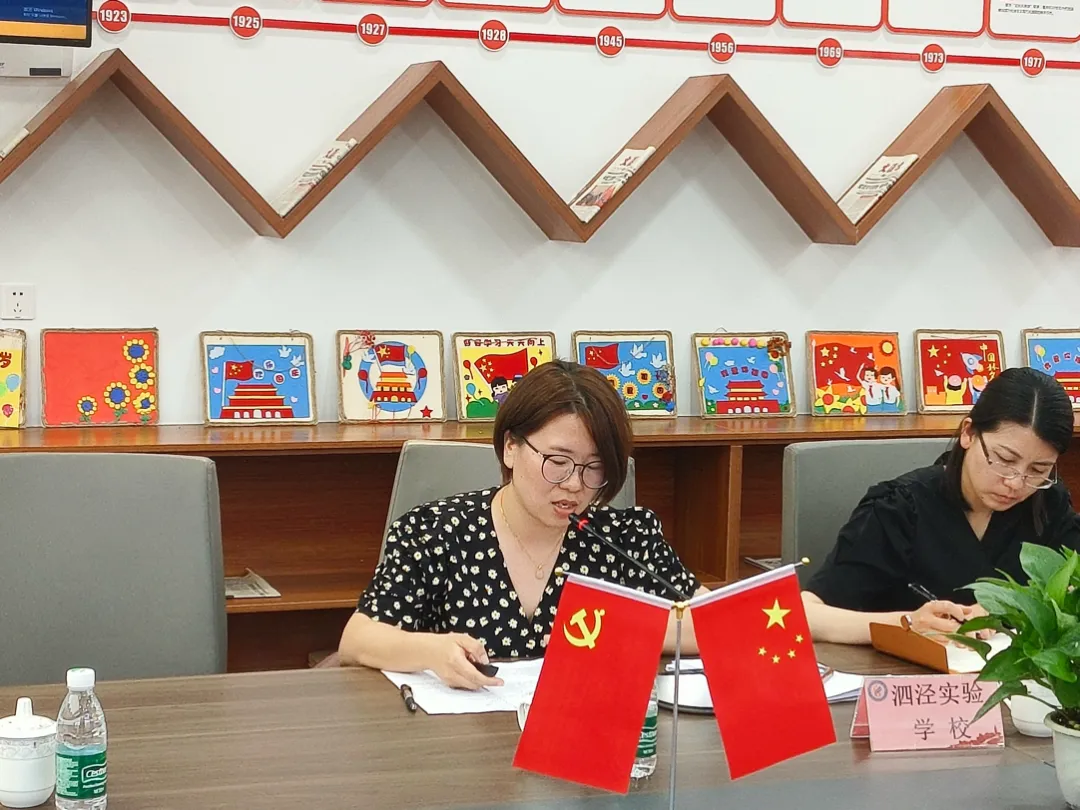 泗泾实验学校沈莉莉老师围绕学校师资建设这一阶段性工作内容,介绍了见习教师、校本研修活动的制度保障以及师徒互听和专家座谈等培训形式。