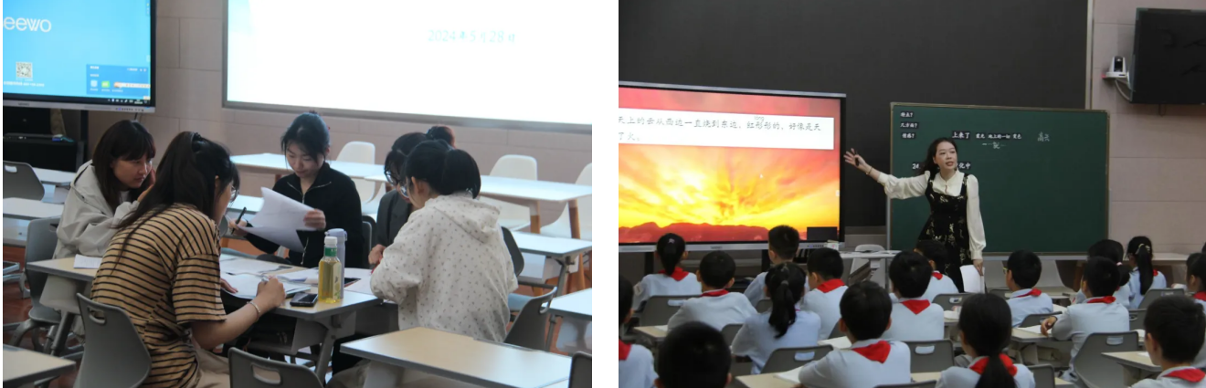 5月28日,研修班本学期第三次研修活动在 第一附属小学西校区举行。上午,种子团队教师以小组为单位,在确立观课重点后,观摩学习了 第一附属小学刘欣悦老师执教的《火烧云》一课。观课结束后,各小组老师通过讨论形成共识,进行交流,在场的专家老师进行了精准点评。下午,在专家团队的带领下,种子团队教师针对三年级下册第八单元《慢性子裁缝和急性子顾客》开展了集体备课。