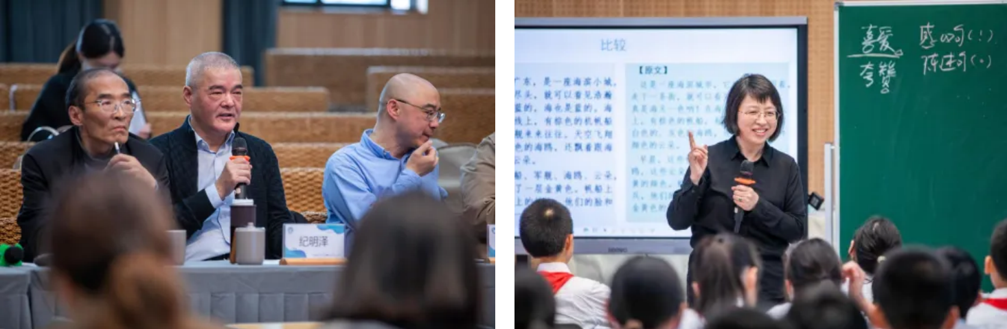 下午, 郑桂华教授执教五年级示范课《海滨小城》,并就“思辨性阅读与表达如何学、如何教”进行了深入浅出的分享,带领老师们探讨如何结合学生的年段特征品读语言文字,提出将学生对文本的“感受”作为教学“第一要义”,重视学生的审美体验。上海市教师教育学院副院长纪明泽对此次活动做了总结性讲话,他高度赞扬了郑桂华教授“绝知此事要躬行”的教学态度,以亲身示范,向青年教师们展现了从教学中主动思考、勤于反思的精神。他还提出要聚焦学生核心素养的培养,重组教学内容,重视单元教学,打通学科之间的壁垒,促进课堂教学的优化,推进育人方式的改革。