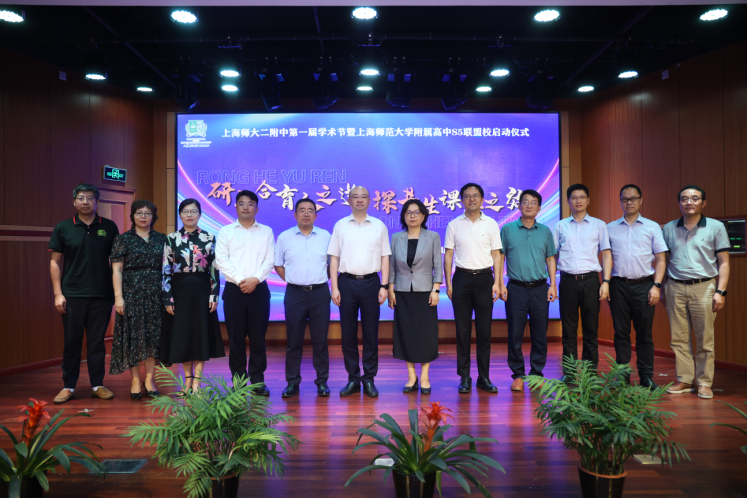 为借助特色普通高中建设项目这一平台继续深化附属学校办学内涵,助推学校高质量发展,7月4日, 附属高中S5联盟校启动仪式在 第二附属中学圆满举办。 副校长张峥嵘、金山区教育局局长郑瑛、 教务处、 处长王健、金山区教育局副局长孙方波、 副处长郭长江、 教育学院副教授李重、生命与环境科学学院副教授李慧、金山区教育学院教科研室主任高瑛、 附属高中S5联盟校校长( 第二附属中学校长蔡文、 附属宝山罗店中学校长严卫东, 附属外国语中学校长李凯、 附属嘉定高级中学校长郭长江, 附属虹口中学校长李鹏)、 湾区教育集团校教师代表等共同出席本次活动,启动仪式由 副处长李晓芳主持。