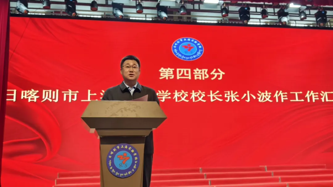 接着,日喀则市教育局党组成员、副局长、日喀则市上海实验学校校长张小波作工作报告。他介绍了全体师生一年来在党建引领、思政教育、教学科研、人才培养和辐射引领等方面获得的成绩和取得的经验,并勉励大家在新学年激发内生活力,众志成城、团结一致、超越自我、勇攀高峰。