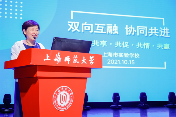 校长袁雯在大会发言中介绍,在“十四五”期间, 响应时代需求,塑造师范教育新特色,以国家建设教师教育改革实验区和高水平师范教育基地为契机,积极实施公费师范生教育,扩大师范生招生规模,2021年度扩招师范生1000名,使得师范生在校生从过去的24%提升到43%,明年将超过50%。在过去一年里, 通过建构UGS(高校、政府、中小学)协同框架,优化服务基础教育的布局,进行系统性谋划、持久性助力;通过探索数字化、智能化时代的未来教育形态,对服务基础教育的能级进行全方位赋能重塑,助力一流城市、一流基础教育建设。一年来,学校在中心城区、五个新城、金山宝山通过高质量基础教育协同生态模式,助推各区集聚更多优质教育资源,签约新建立了4个区域性基础教育集团,新增27所附属学校,办好老百姓家门口的高品质学校。