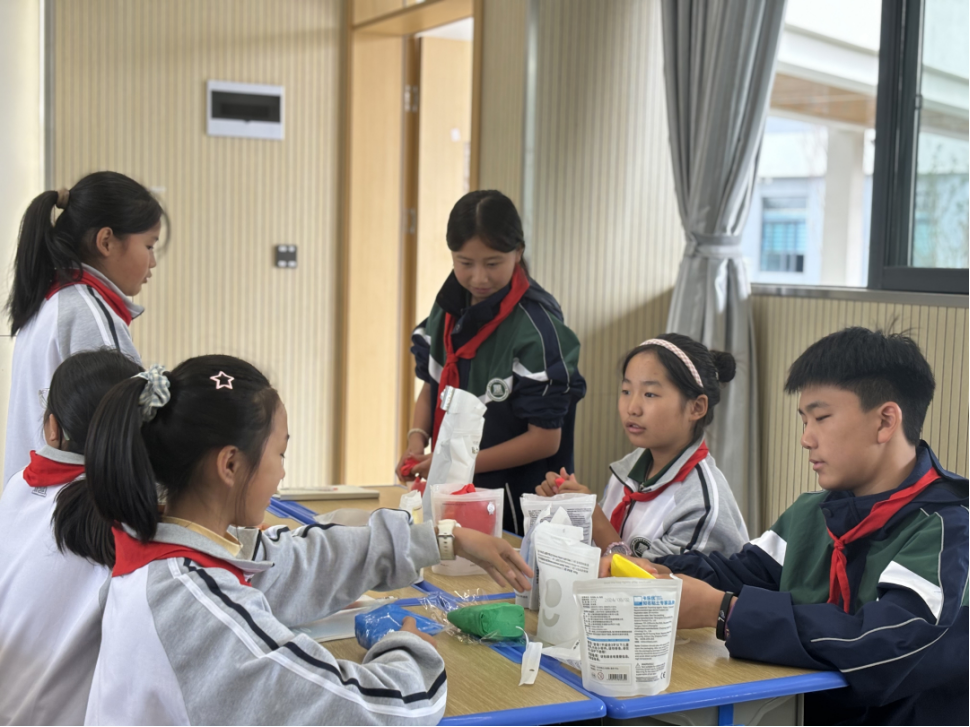 指导活动现场,同学们对理论及实践课程表现出极大的热情。理论课上他们积极向指导专家提问;实践课五人一组用“超轻黏土”进行创作,一个个彩色的“水果”被塑造而出;人工智能课堂,同学们上台通过与AI对话获取相关信息,进一步感受人工智能带来的便利,加深了对红色文化的理解。