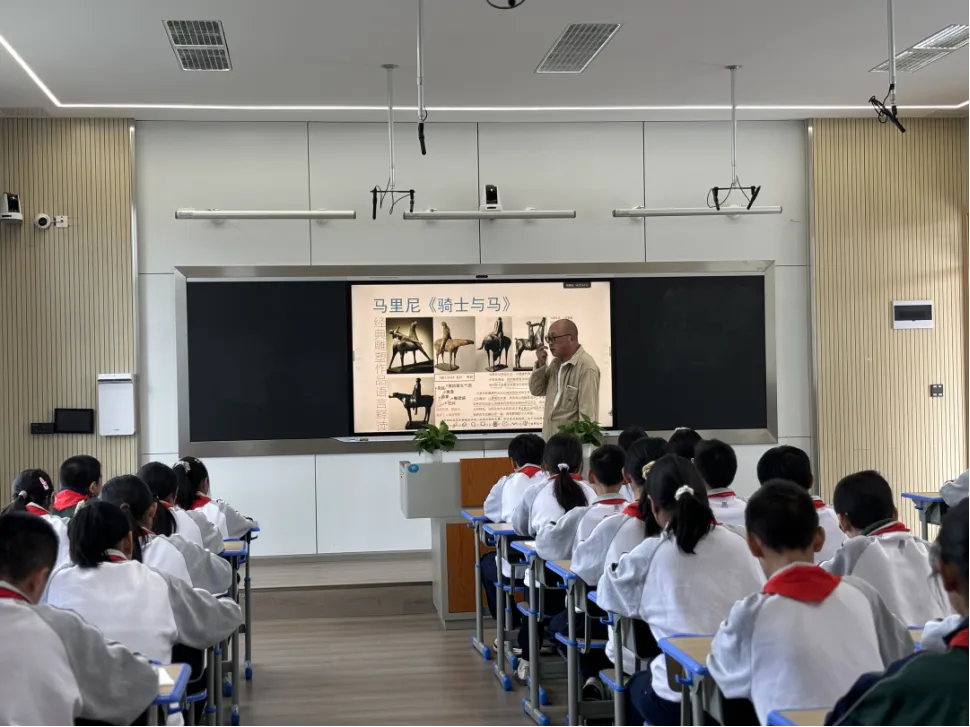 此次在 附属贵安实验学校开展人工智能和美术艺术相结合的STEM教育公益服务,来黔的团队成员包含了人工智能专家、雕塑艺术专家,以及 培养的师范专业研究生和本科生。专家团队成员为附属贵安实验学校七年级学生带来了《雕塑与大空间思维》《绘制红色图鉴,对话AI导览》《雕塑与空间搭建实践》三门STEM课程。