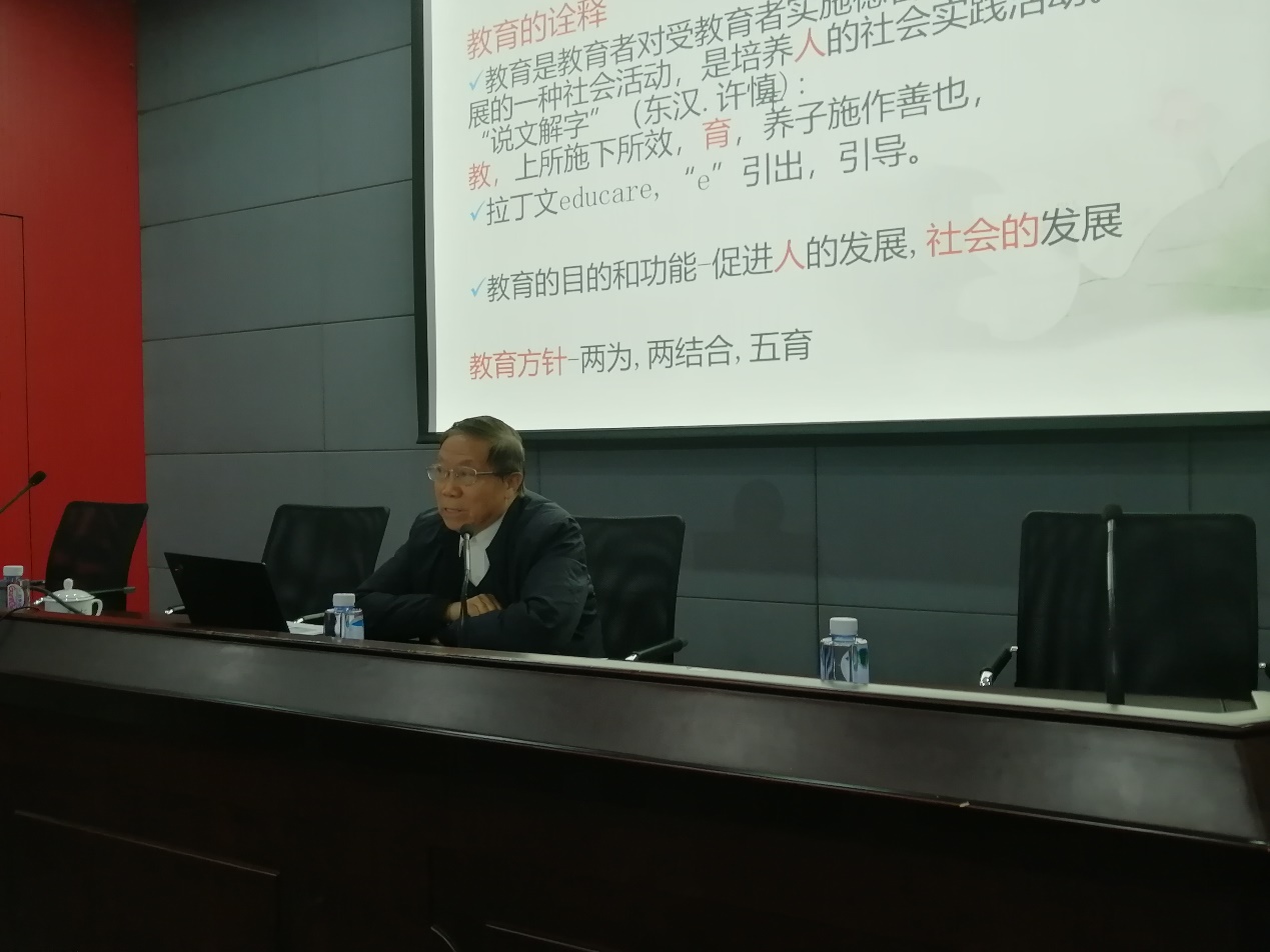 原 校长、82岁高龄的杨德广教授为研修班学员作了《怎样提高校长领导力》的报告。杨教授首先介绍了“教育”的概念和内涵、目的和功能,他向学员们特别强调要牢记党的教育方针,他从教育家、领导者、管理者等多个角度阐述了校长领导教育工作要关注的内容和努力的方向。他提出,校长要具备多种领导能力:包括计划能力、组织能力,引领能力、激励能力、沟通能力、协调能力、表达能力、决断能力、创新能力、抗挫折能力和学习能力等。杨教授耄耋高龄却精神矍铄,循循善诱娓娓道来,学员们被他从一个农民的儿子到大学教授、校长的经历深深激励,被他热心公益、全心全意为人民服务的精神深深感动。杨校长做到了“健康地为祖国工作50年”,并把一生奉献给了教育事业,值得我们全体学员铭记和学习!