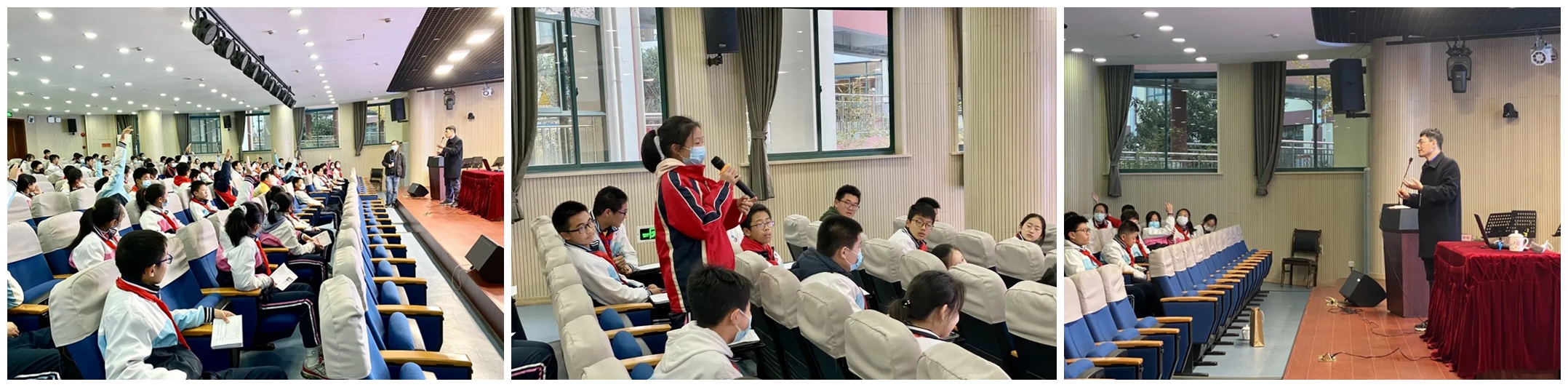12月7日下午, 基础教育集团品牌活动“海上名师大讲堂”再一次走进高桥实验园,由 化学与材料科学学院郎万中教授给同学们带来一堂关于“我们身边的膜分离技术”讲座。本次讲座面向全体预备至初二年级学生。在前期讲座预告宣传后,同学们踊跃报名参加。120位同学来到报告厅聆听本次科普讲座,其余同学在班中直播观看。