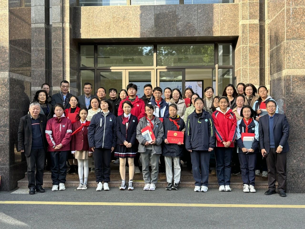 与会领导为获奖师生代表颁发荣誉奖项。此外,本次大赛还特别设置了优秀组织奖,以表彰在组织动员、作品征集、作品遴选等方面表现出色的学校,获奖单位分别是: 附属中学宝山分校、 附属虹口中学、 附属高桥实验中学。