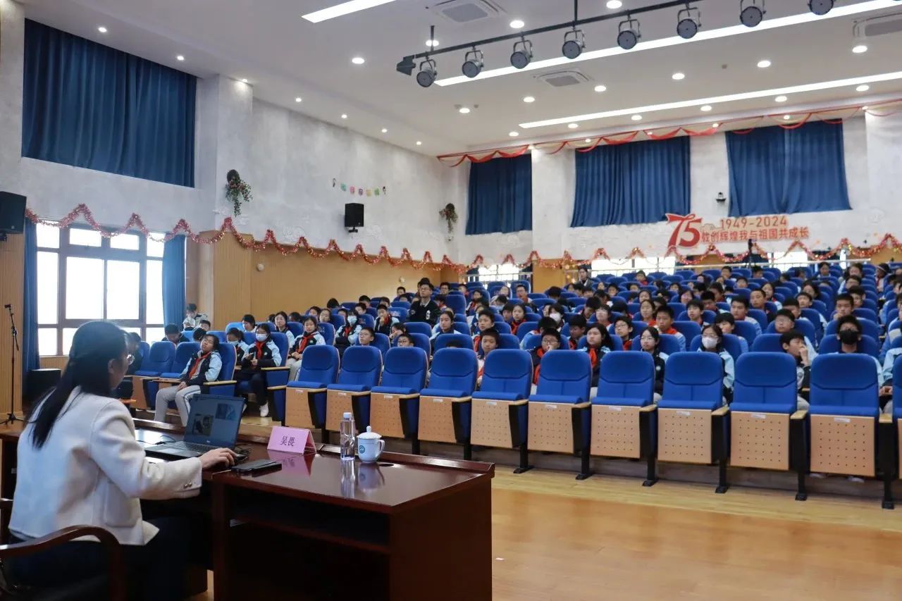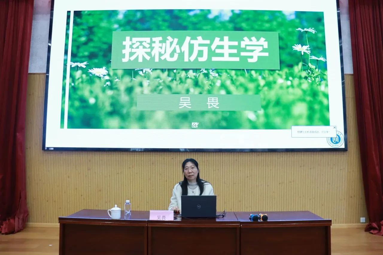 吴畏为六、七年级师生带来《探秘仿生学》讲座,从自然界的奇妙现象入手,以生动讲解激发师生探索科学、热爱自然的热情。