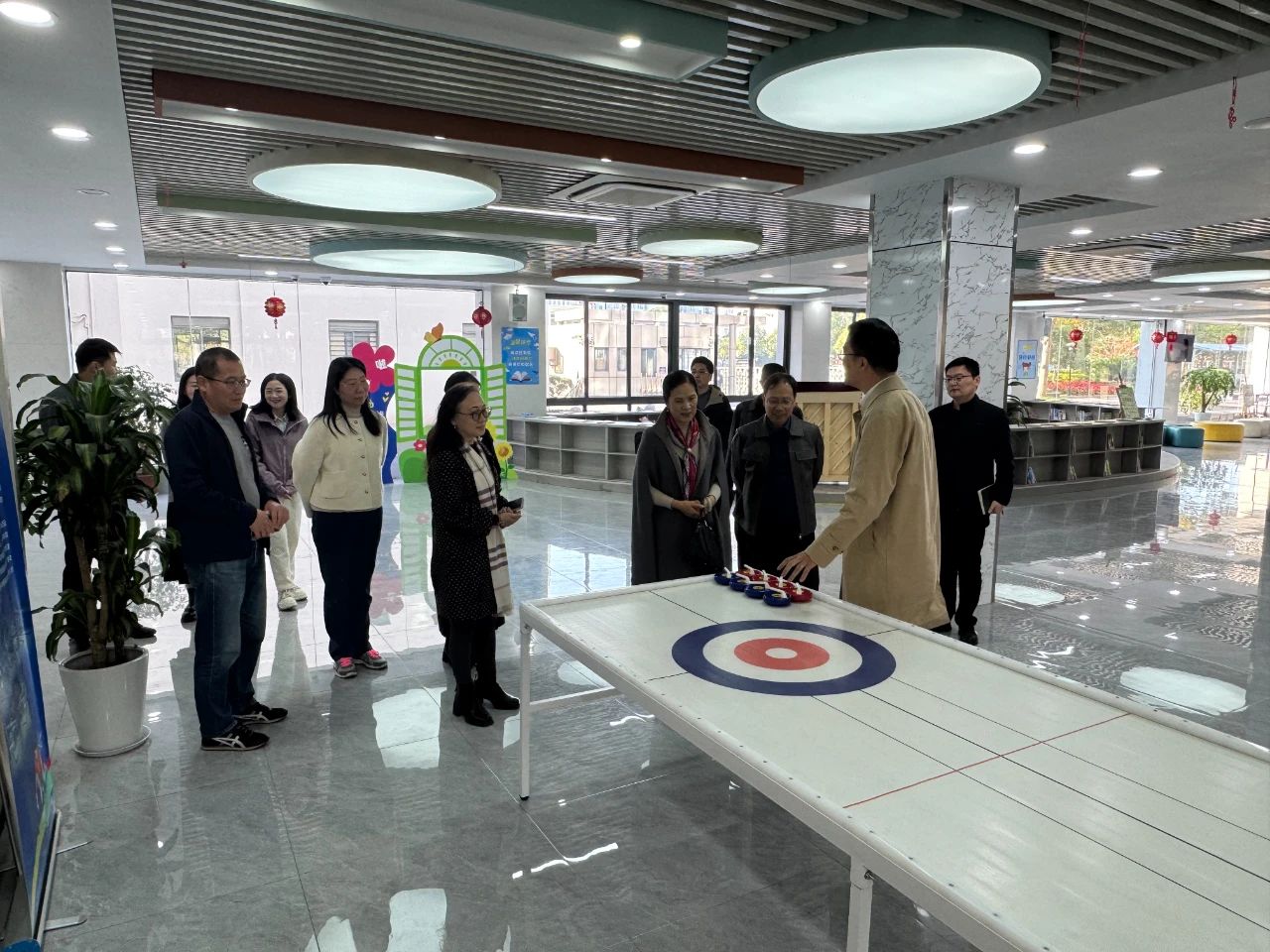 上午,专家组参观了学校多功能学生活动大厅、冰壶中心、周大根烈士陈列室等,对学校探索冰壶运动与红色精神融合的举措表示肯定。随后,专家深入课堂,观摩了六节涵盖语文、数学、英语、物理、道德与法治、生命科学等学科的展示课。授课教师展现出扎实的教学功底,专家们课后与教师交流,提出宝贵意见。如冯智玲老师的语文课融合儿童情趣与科普知识,王先云等专家以“段、类、篇、时、点”备课法为指导,深化了教学目标;汪冰洁老师的数学课通过实践让学生认识角与直角,钟文芳等提出优化建议。