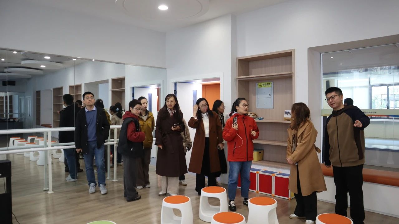 总务副主任金海燕老师带领与会的专家与老师参观了附属金山龙航小学的图书馆、剧场和食堂等场所,老师们对附属金山龙航小学的基础设施以及空间布局给予了高度赞扬。